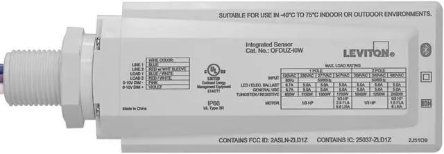 • 120-347VAC 50/60Hz 1-pole, 208-480VAC 50/60Hz 2-pole, rated for 6.7A LED lighting loads