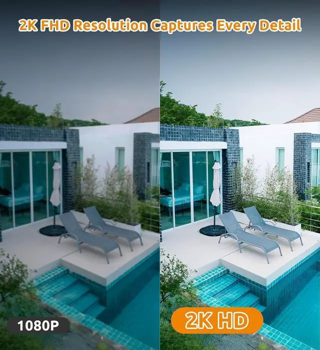 2K QHD Video with Clear Night Vision: Capture detailed video with 2K QHD resolution, providing sharp, high-quality images day and night. The camera includes night vision technology that keeps your property visible even in low-light conditions, offering round-the-clock protection.