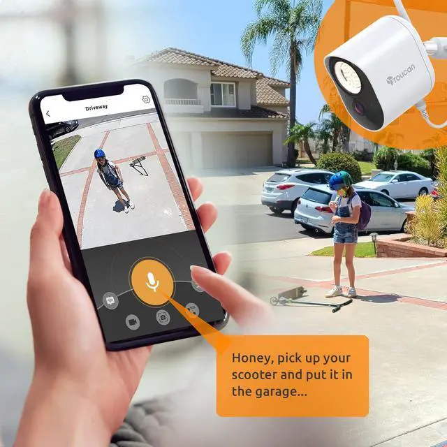 2 WAY AUDIO AND LOUD ALARM SIREN: Use two-way talk to speak through the camera, use pre-recorded auto-responses to let someone know that youre watching, even trigger the 110dB siren and flashing light - all from the free Toucan Smart Home app