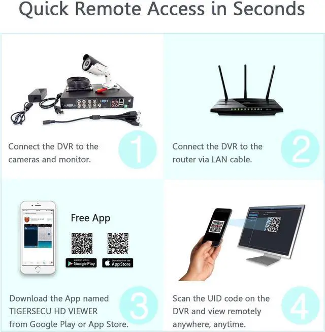 When motion is detected, our motion technology will send you alerts on your mobile devices instantly. See live or playback video with the no monthly fee Tigersecu Security App, without contracts or monthly fees.