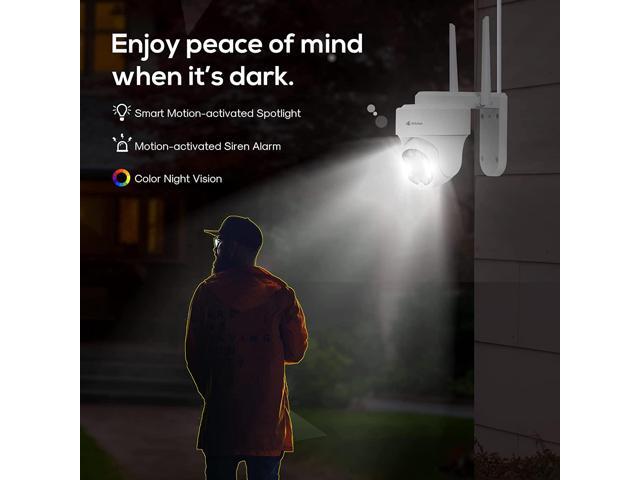 - 360° Coverage: Expand your coverage with the 2K Pan-Tilt Wi-Fi Security camera. Cover every angle and eliminate blind spots with the cameras vertical and horizontal rotation. Digitally zoom in or out to see every detail near and far.