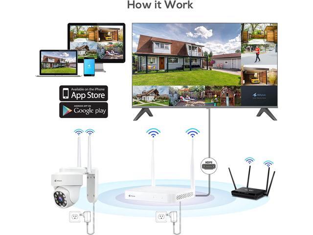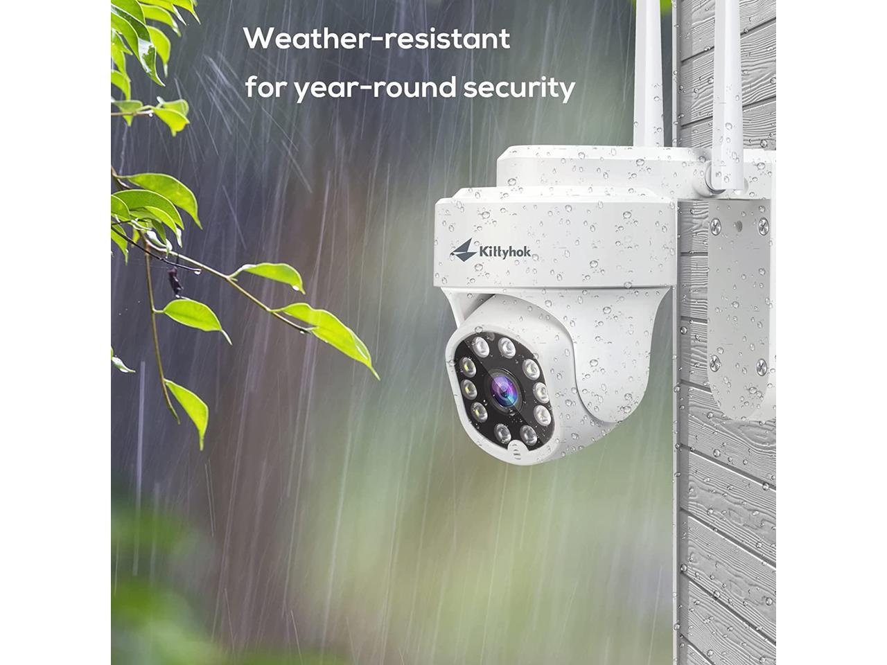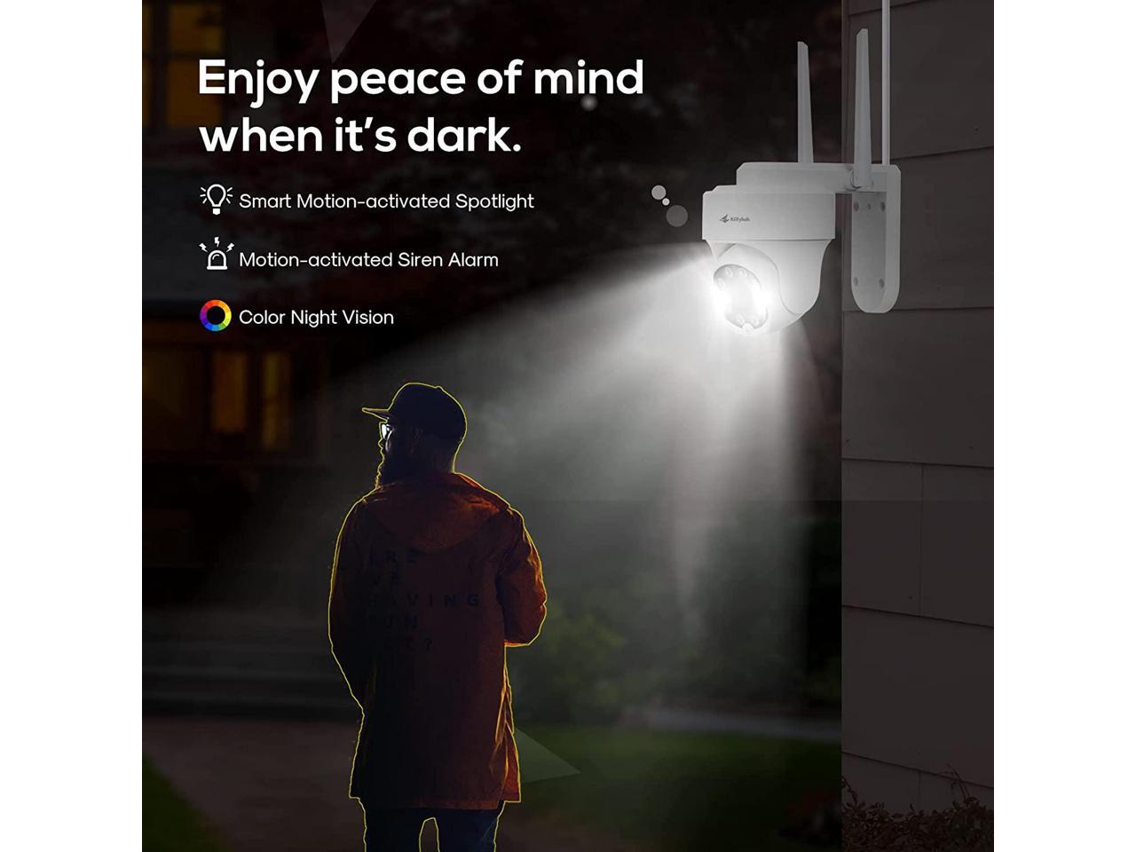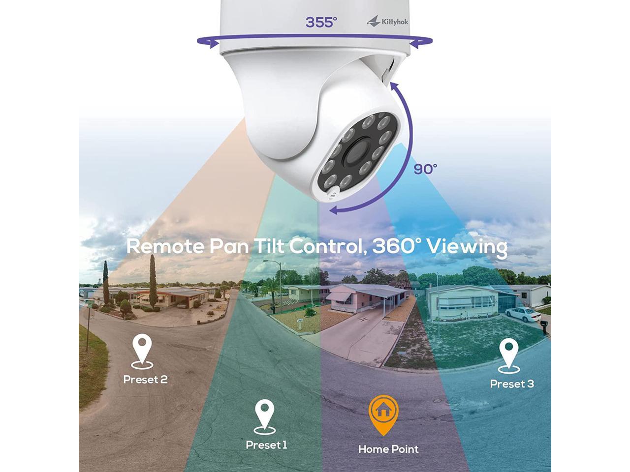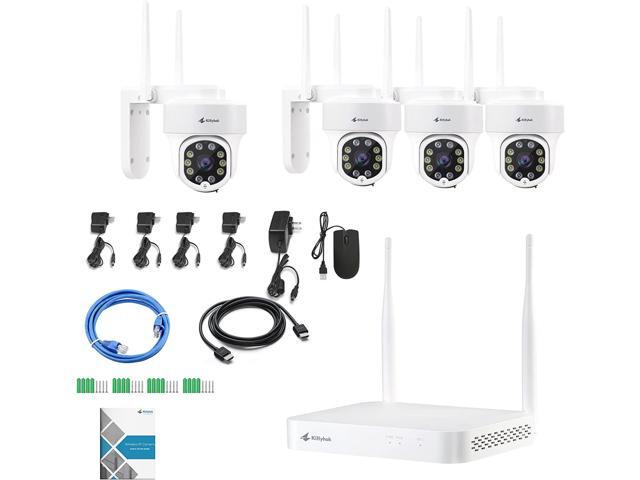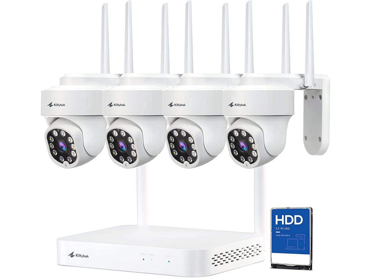 Kittyhok PTZ Wireless Security Camera System | 4pcs Ultra 2K Wireless Outdoor Security Camera with 360° View, auto Tracking, Human Detection, and Spotlight | 8CH NVR with 500GB HDD for 24-7 Recording