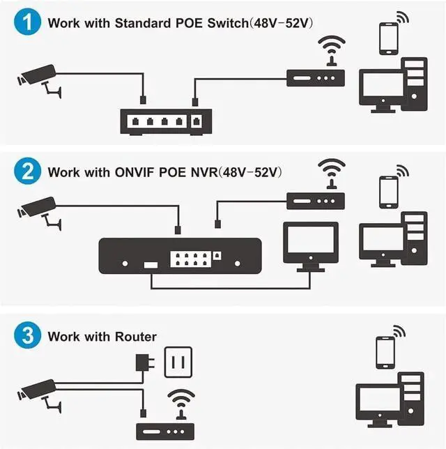Smart Motion Detection & CamHipro APP: This SV3C poe camera can be set to push motion detection alerts to phone app, email. Set detection zone, humanoid alarm and adjust sensibility are also available. The poe camera is using the authority CamHipro APP which has been widely used around US. It would providing intutitive and user-friendly software interface for easier configuration.