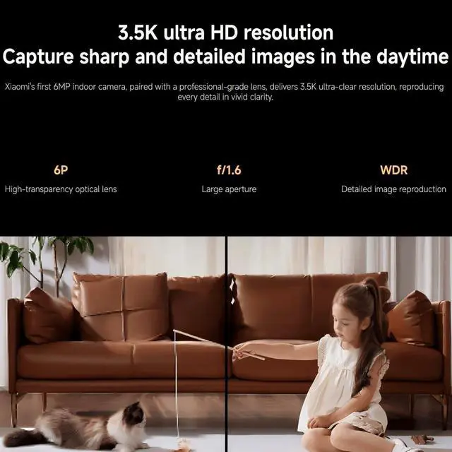 Unmatched 3.5K UHD Clarity with Superior Low-Light Vision: Experience ultra-sharp monitoring with Xiaomi's first 6MP indoor camera, featuring a 3.5K UHD (3200x1800) resolution and a large 1/2.45-inch sensor for vivid detail. The ultra-low-light full-color imaging and eight non-glow 940nm infrared lights ensure clear, colorful footage at dusk and detailed visibility in total darkness.