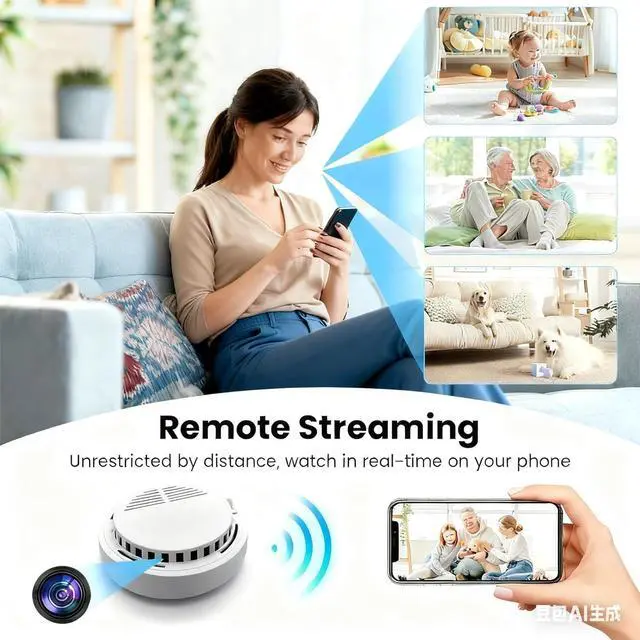 Smart Motion Detection: Equipped with built-in motion-sensing technology, this smoke detector camera detects movement and sends real-time notifications via the companion app, keeping you informed about activity at home or in the office.