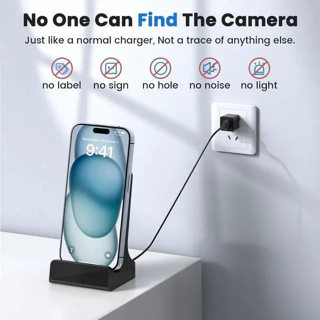 2.4G&5GHz WiFi Camera - The Lizvie spy camera charger supports 2.4G&5GHz Dual-Band WiFi connection, offering 2K ultra-clear image quality that is smoother than 2.4GHz alone. It charge your cell phone as you go (only supports cell phones with wireless charging), connects to WiFi more easily and can automatically reconnect to capture video when the network is restored, as . The sturdy magnetic front cover is secure and the unique no-hole design ensures perfect concealment.