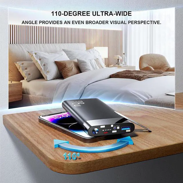 Advanced Wireless Power Bank Camera: This state-of-the-art camera ensures continuous, safeguarding crucial moments in homes, offices, and hotels. With its invisible, opaque glass cover, the footage remains completely discreet and undetectable.