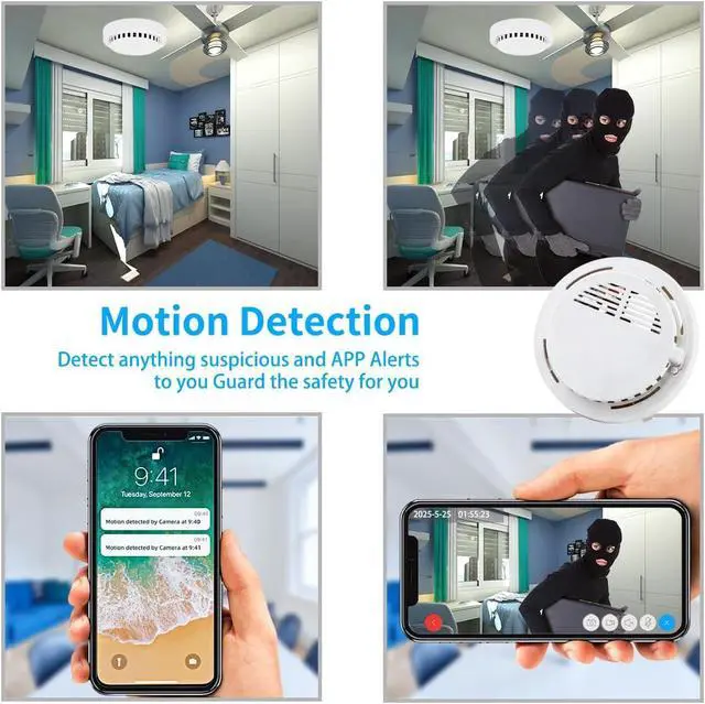 2.4G & 5G WiFi Remote View, Multi-User & Easy Setup: Connects via stable 2.4G & 5G WiFi for remote live view and playback through the app. Supports up to 5 devices and 5 users simultaneously, ideal for families or offices. Simple setup and a smoke detectorstyle design allow it to blend naturally into indoor spaces.