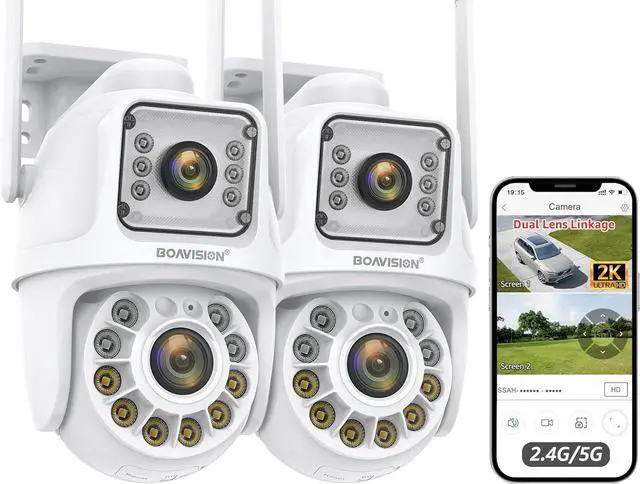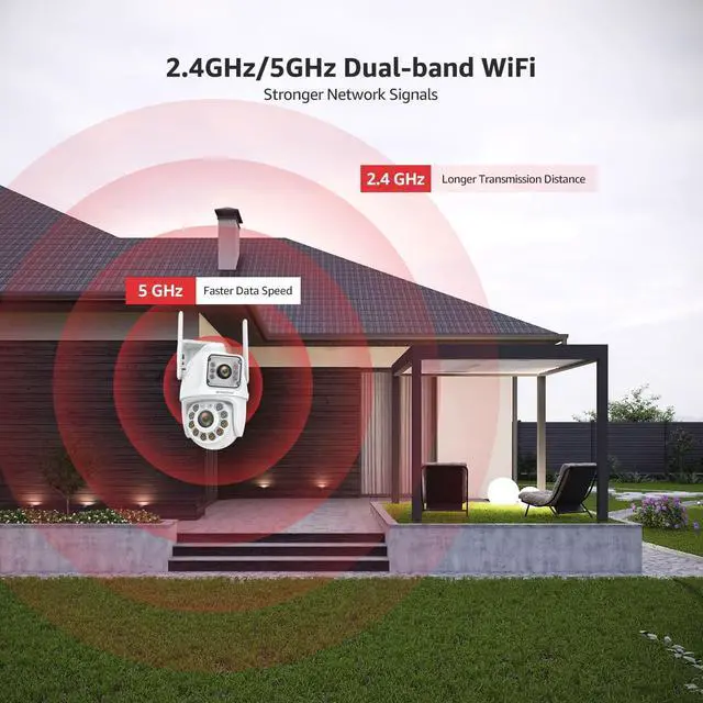 Color Night Vision & Two-way AudioThis ptz outdoor camera won't let you down with built-in 16 lights and guarantees full color/IR night vision images for up to 60 feet. Effortlessly capture every detail of your surroundings. There are three night vision modes to choose from. This dual lens security camera has a built-in speaker and microphone so you can talk to visitors in real time or warn of unwanted intruders while you're out.