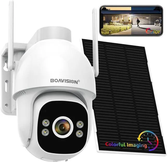 8W Solar-Powered&Outdoor IP66 The upgraded 8W solar panel charges faster and covers a larger area, providing year-round, self-sustaining power with just 2 hours of sunlight each day. The BOAVISION wireless outdoor camera features a flexible solar panel and built-in rechargeable battery, making installation quick and easy.With an IP66 waterproof design, the camera performs in extreme weather conditions, meaning it's ideal for open areas such as parking lots, garages, driveways, gardens and front yards.