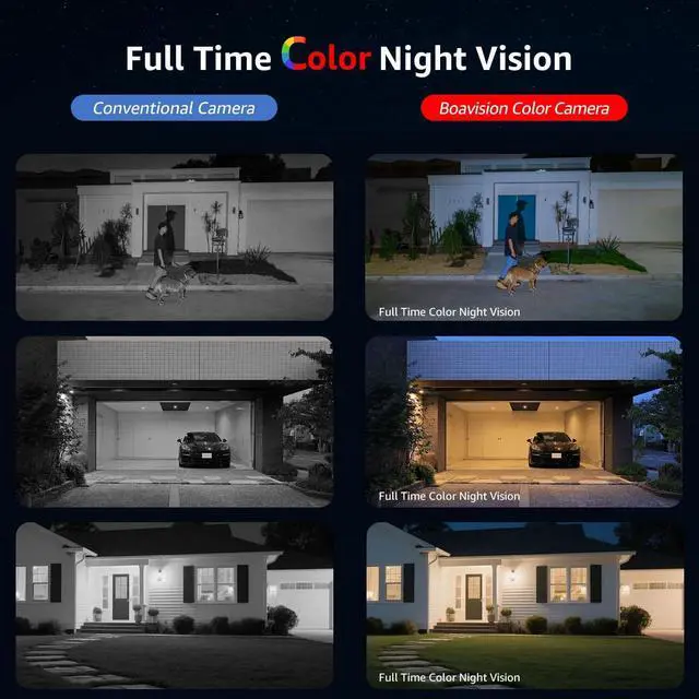 2K Full-color Night Vision2K Night vision provides full-color recording with a built-in ultra-low-light sensor. Even in low-light conditions, you don't need to activate LED compensation to capture brilliant color images. In 100% darkness, the low-light LED turns on to produce brilliant color images. There's no black and white mode.