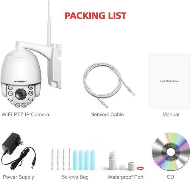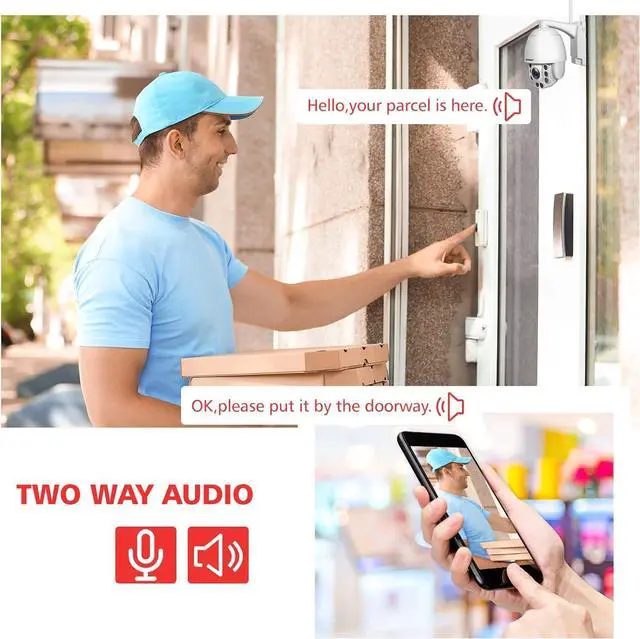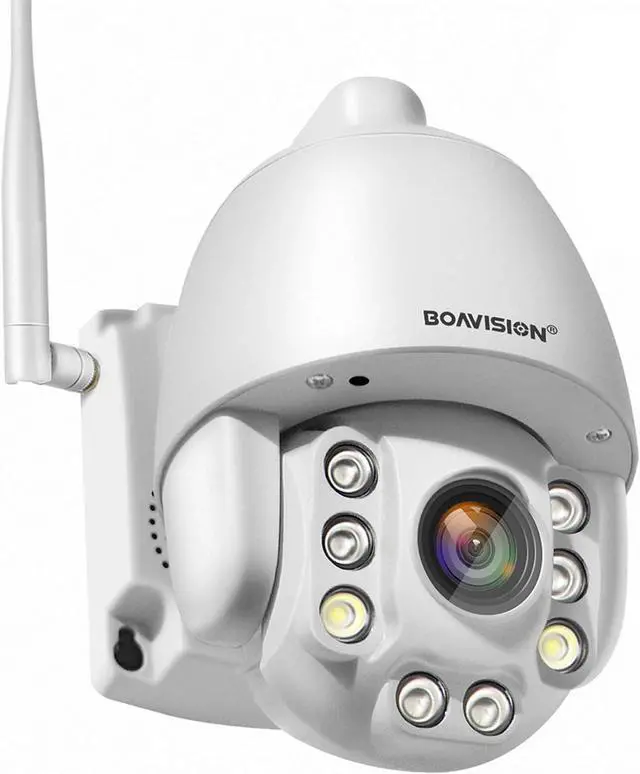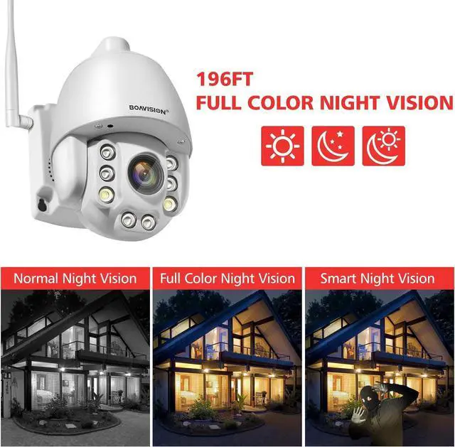 HD 5 Mega-pixels Color night visionPTZ Camera outdoor wifi 5MP (2560x1920) resolution, offers you super hd image quality live by phone&pc. 6pcs Array infrared led or 2pcs white supplement Light, 196ft Night Vision lights will provide you clear colourful night vision video, same color video as daytime.