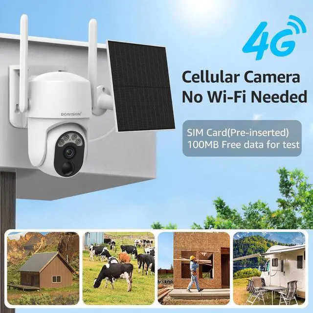 No WiFi needed & 100% Wire-freeThis 4G LTE security camera can work anywhere nationwide with 3G/4G LTE coverage,easily be installed anywhere without WiFi coverage. Ideal for outdoor work, eg, countryside, backyards, gardens, campers, driveways, farms and ranches, and even live construction sites and fields, etc. Supports 3G/4G network of T-Mobile and AT&T.
