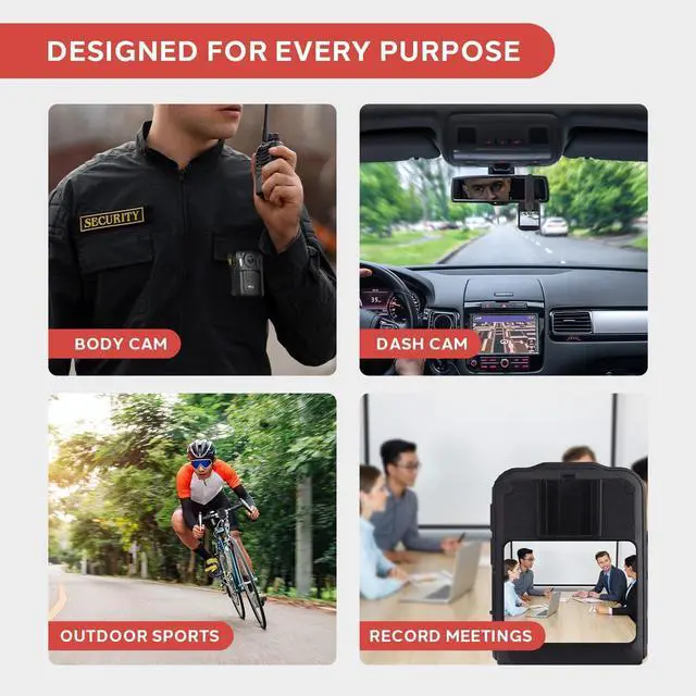 WEARABLE DESIGN: The video recorder can be easily worn w/ the included mounting clip. This is perfect for security guards & law enforcement who want to provide visual evidence when necessary. Features built-in mic & speaker