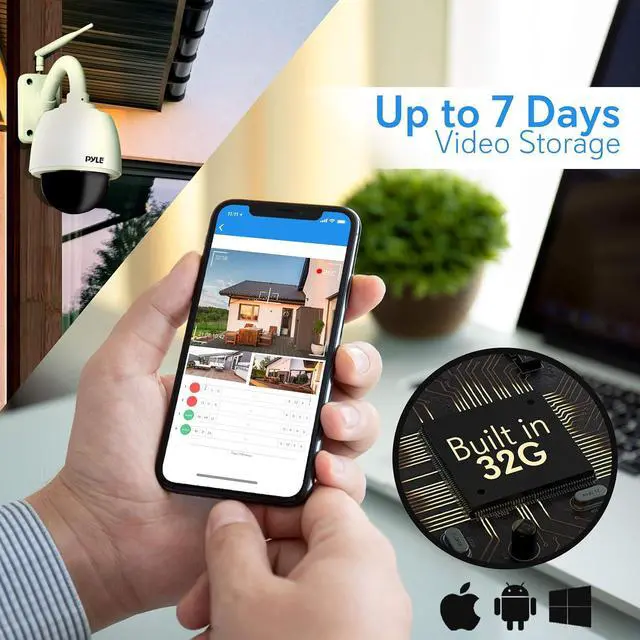 BUILT IN 32g SD MEMORY STORAGE - Get remote access to the wireless ip camera recordings feed via p2p streaming like a pro from any ios Apple iPhone - Android mobile smart phone using smartphone app - PC Windows home laptop or desktop computer