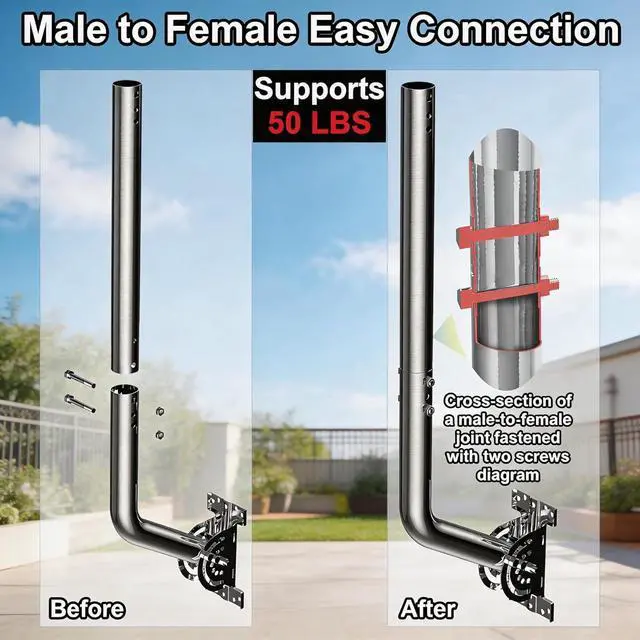 EXPANDABLE MOUNTING SYSTEM: Supports optional extension poles for added height or extra clearance, giving you more flexibility to improve signal positioning around roofs, walls, and obstructions.
