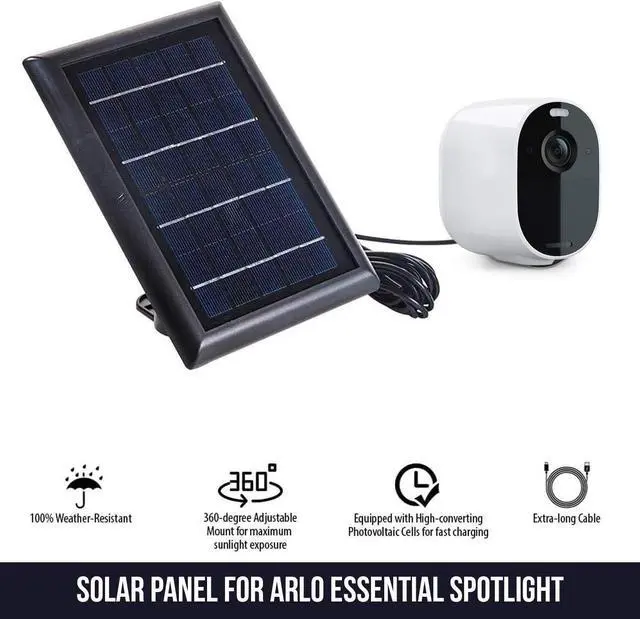 CHARGE YOUR ARLO ESSENTIAL SPOTLIGHT/XL SPOTLIGHT - Our new Solar Panel for the Arlo Essential Spotlight/XL Spotlight Camera ensures that your outdoor camera never runs out of battery again.