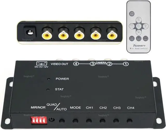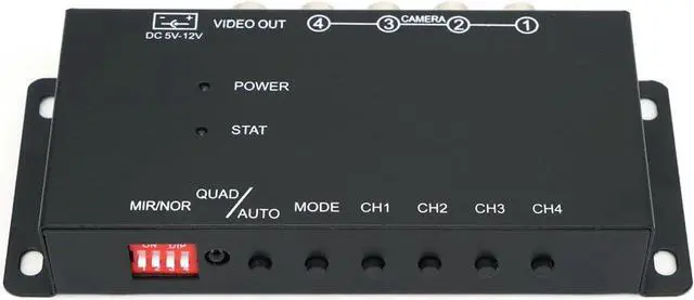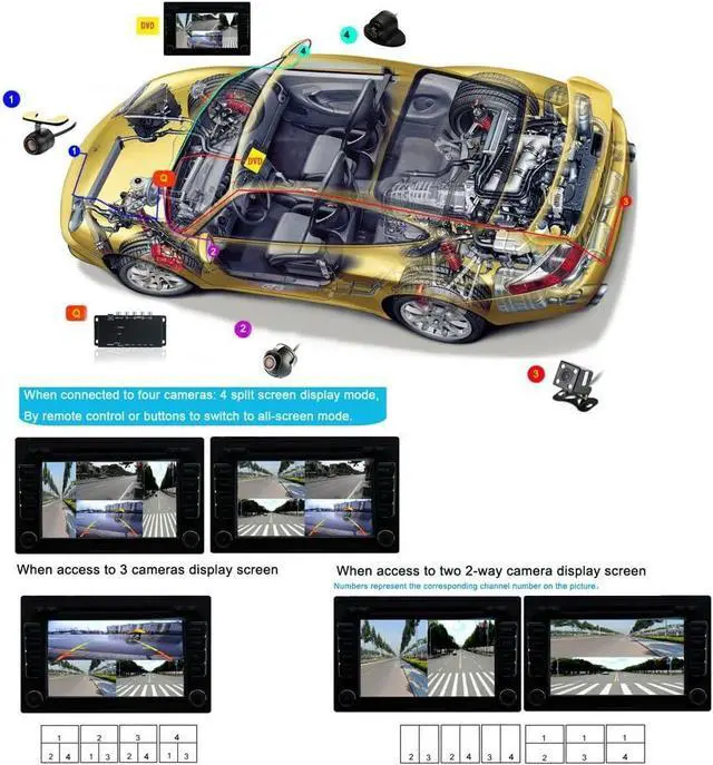 Special design for car and vehicle; support 4 vehicle cameras in Max 4 channels real-time display; multiple display mode Image mirror function; PAL/NTSC TV system auto adapting DC5V to 20V Power Voltage Input Remote Controller Attached