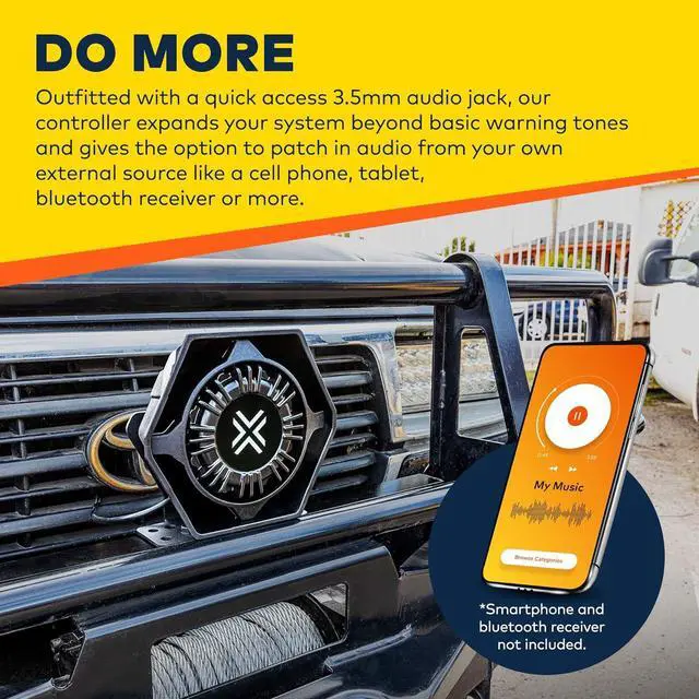 DO MORE - Outfitted with a quick access 3.5mm audio jack, our controller expands your system beyond basic warning tones and gives the option to patch in audio from your own external source like a cell phone, tablet, bluetooth receiver or more.
