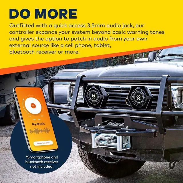 DO MORE - Outfitted with a quick access 3.5mm audio jack, our controller expands your system beyond basic warning tones and gives the option to patch in audio from your own external source like a cell phone, tablet, bluetooth receiver or more.