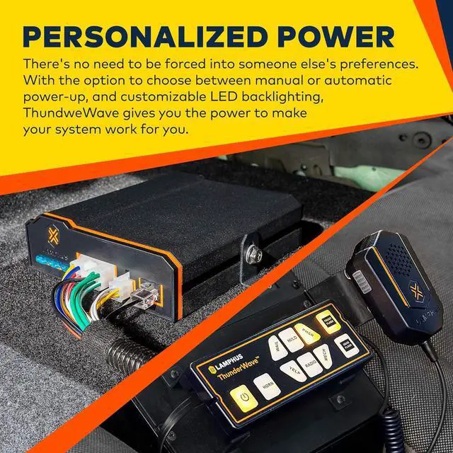 PERSONALIZED POWER - There's no need to be forced into someone else's preferences. With the option to choose between manual or automatic power-up, and customizable LED backlighting, ThundweWave gives you the power to make your system work for you.
