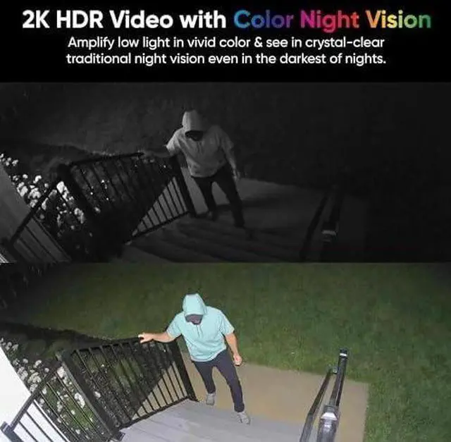 2K Full HD with Color Night Vision - Clear and detailed footage that captures every important moment, day or night.
