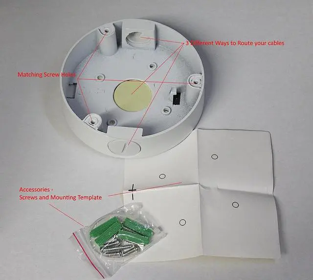 Material: Aluminium alloy Easily hide all connections within the base, and provides a better angle for viewing. Hole in the back to run cables in and out, and (2) 3/4" conduits on opposite sides of eachother. Please note that the 3/4" threads are SHALLOW - it may not fit all conduit fittings.