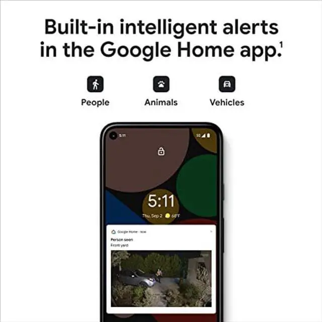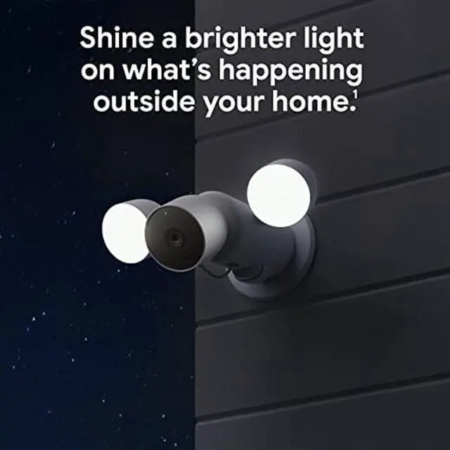 Nest Cam with floodlight shines a brighter light on what's happening at home. The smart security camera detects important activity and knows the difference between people, animals, and vehicles. When something happens outside your home, the Nest Cam security camera automatically turns on the lights and sends you an alert. [1] Plus, view live HD video, replay video recordings, talk to visitors, and more - all from the Google Home app. Nest Cam with floodlight requires a free Google Account and is not compatible with the Nest app.