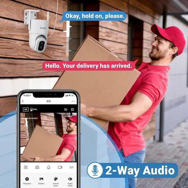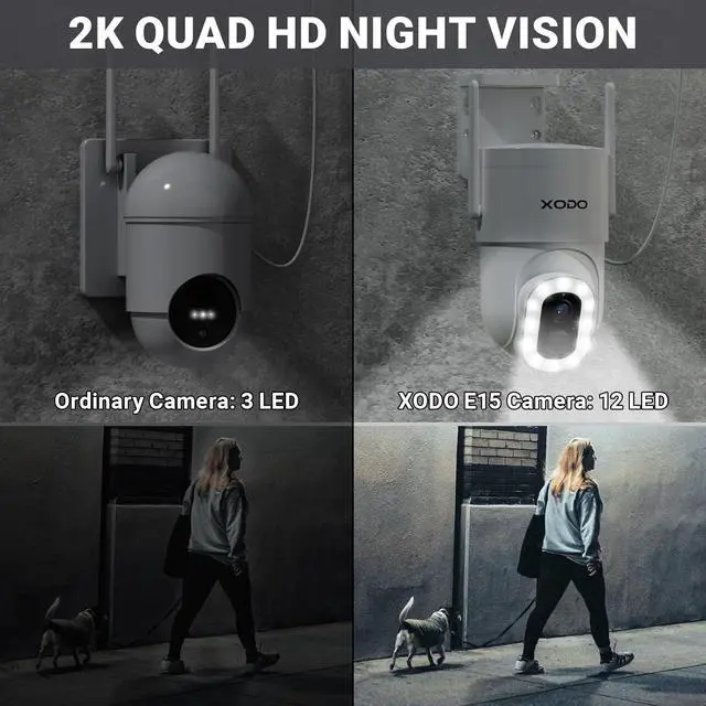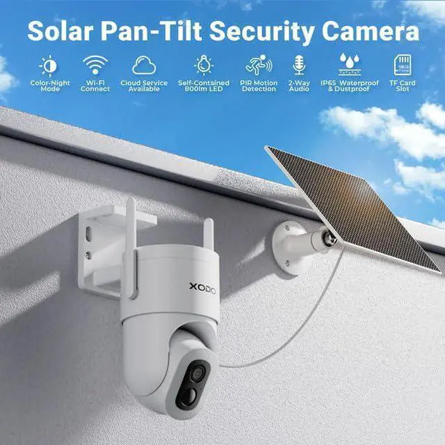 Smart PIR & Two-Way Audio: The solar powered security camera PIR sensor with two-way audio operation, more effective potential intruder detection. It is capable of distinguishing between people, cars, pets, etc., and can efficiently push real-time notifications to users through the dedicated XODO app. Custom monitoring areas can be set to maximize coverage, and an integrated microphone and speaker allow for remote warning capabilities.