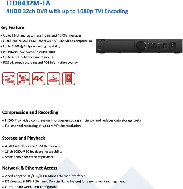 LTS Platinum LTD8432M-EA 32CH 5in1 TVI/CVI/AHD/Analog up to 4MP + 16CH IP upto 6MP 4 SATA DVR LTD8432K-EA, LTD8432M-EA(S), LTD8432T-FA