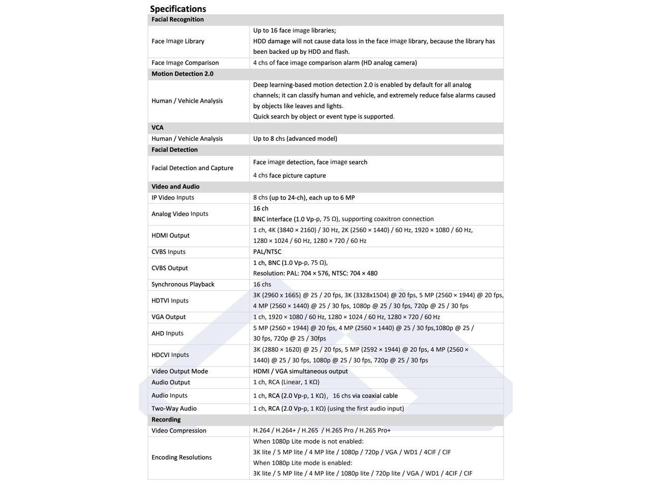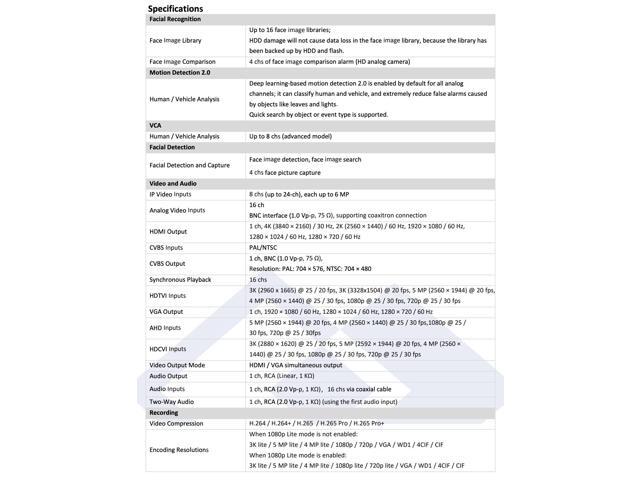 - Supports 4 chs. Facial Recognition or 8-ch advanced VCA functionality based on Deep Learning algorithm