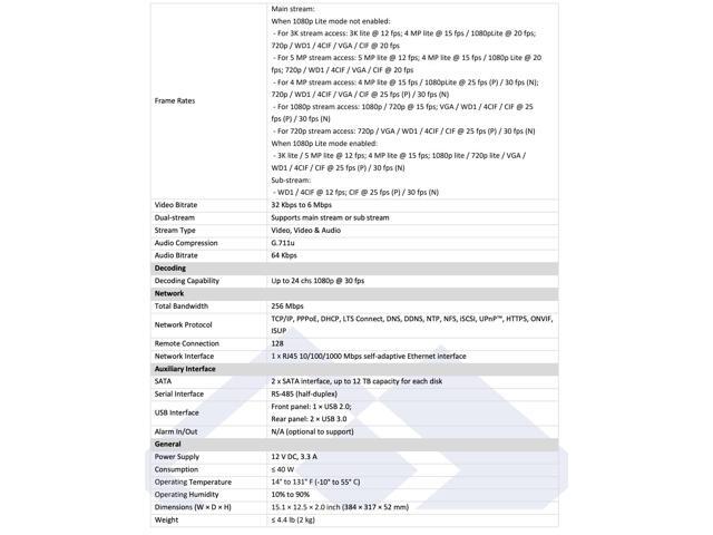 - Up to 24 channels IP camera inputs, each channel up to 6 MP