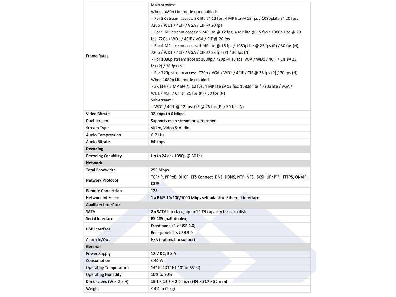 - 16 chs. + 2 IP (up to 6 MP) or 8 IP (up to 4 MP)