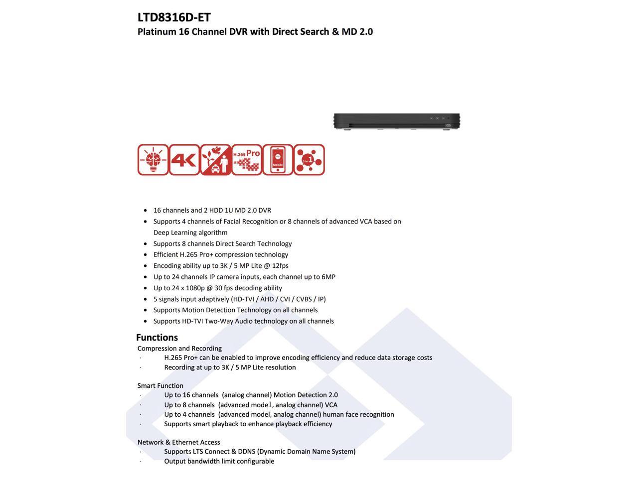 LTS Platinum LTD8316D-ET 16CH 4MP TVI/AHD/CVI/CVBS & 8CH 4MP IP H.265 Pro+ Deep Learning DVR Replacement for LTD8316M-ET, LTD8316K-ET, LTD8316T-ET, LTD8316T-FT, LTD8316T-EA, LTD8316T-FA