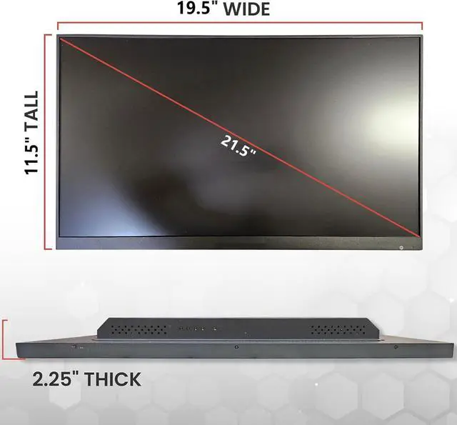 VESA Compatible (mount not included), Mouse Included, 1080p Resolution, Heavy Duty Metal Shell, Built for 24/7 Operation, 21.5, Built In Speakers, USB Power Output.