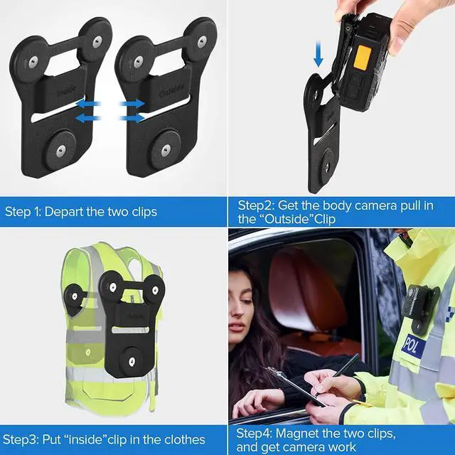 Universal Body Camera Clip with Quality Materials: Fits all body camera brands and models. Made from high-quality black silicone. Safe, non-toxic, odorless, soft, and elastic, ensuring no damage to clothes. Offers thermal stability and resists melting