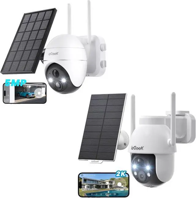 2K Full Color Image & 360 ViewThe ieGeek security camera is equipped with the latest CMOS technology and 3MP high pixel, which provides 1.5 times more detail than traditional 1080p cameras. Built-in 2 IR lights and 2 white lights provide you with clearer color night vision. Wireless solar security camera outdoor with 355° pan, 120° tilt, and 4x digital zoom capability (no auto-tracking), provides 360° surveillance of any corner to secure cars, yards, and other properties.