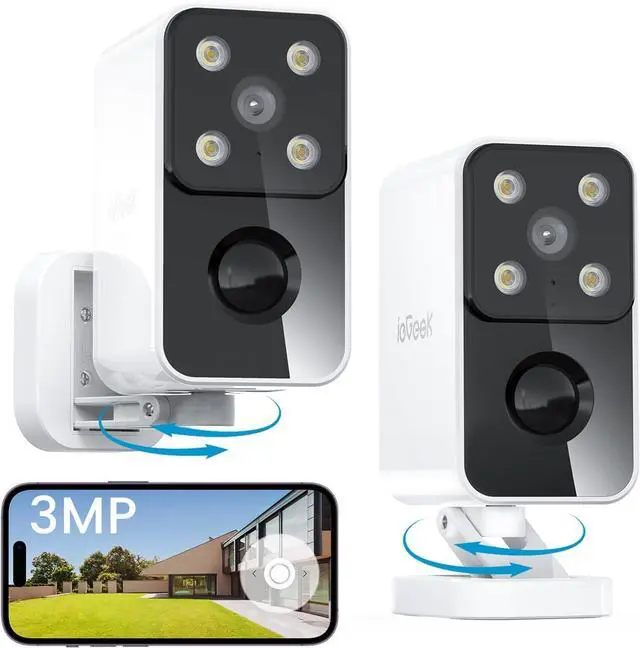 ° This wireless cameras for home security features 2k HD resolution while providing clear full-color night vision, allowing you can see more detail even in low-light conditions. With the upgraded 180° panning wide-angle view( ), you will no longer miss dead spots, allowing you to see wherever you want to see that traditional wireless outdoor camera can't match. ieGeek security camera comes with a 2-year warranty, giving you ultimate peace of mind.