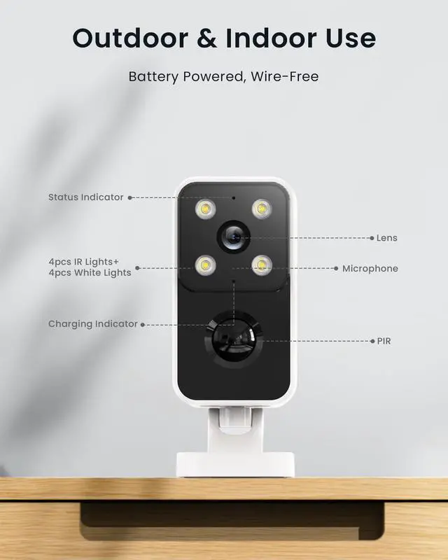 - This S3 security cameras wireless outdoor is 100% wireless, no wires required. Place it anywhere, indoors or outdoors. Connect to Wi-Fi easily ( . ), compatible with Wi-Fi 6 Network to enjoy faster and more reliable 2K image transmission, less interference and stronger cybersecurity. The outdoor security camera has a built-in rechargeable battery (: , ), and enjoy security surveillance for up to 30-60 days on a single charge and can also be connected to solar panels for use.