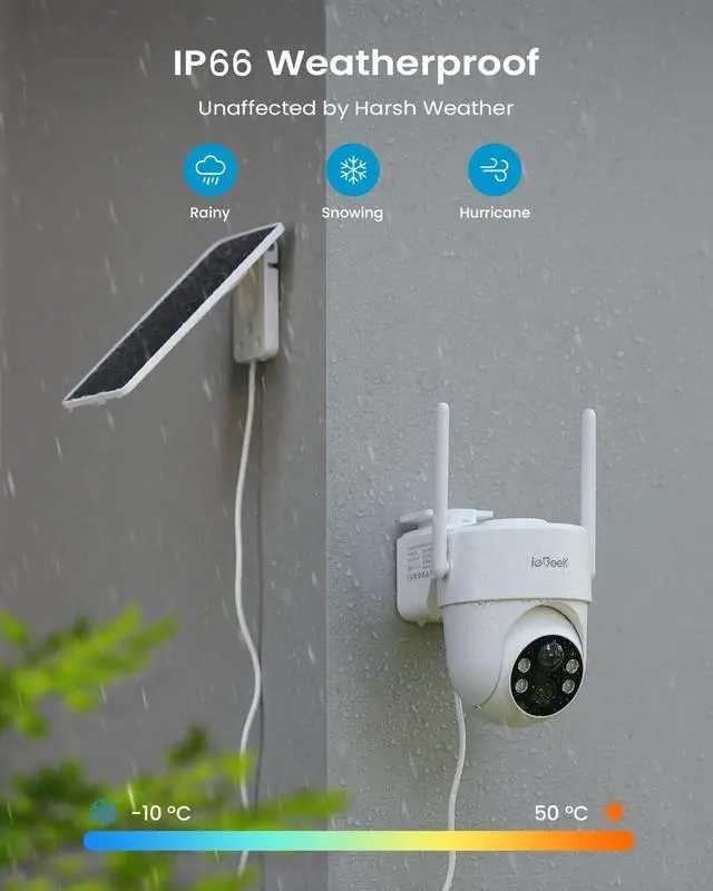Reliable Security, Powered by the Sun. No Wires, No LimitsProtect your home the smart way with the ieGeek Solar Security Camera. Whether you're watching over your front porch, backyard, garage, or driveway, this 100% wire-free camera installs in minutes and delivers peace of mind day and night.