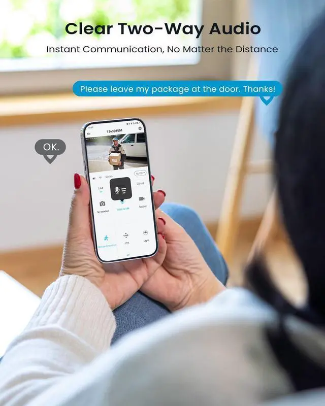 Crystal-Clear 2K Video + Full-Color Night VisionWith stunning 2K resolution and vivid color night vision, youll never miss a detailday or night. The 355° pan and 90° tilt let you remotely scan your surroundings from anywhere via the app. (Auto-tracking not included.)
