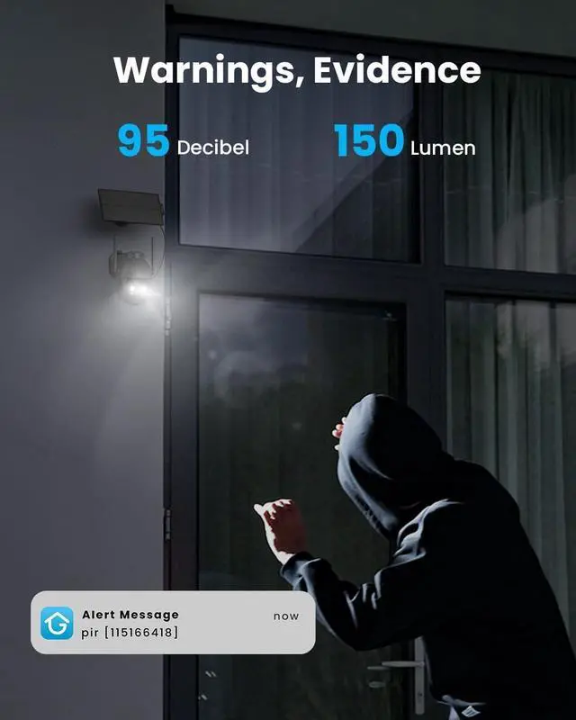 Solar Powered & 100% Wire-FreeThis solar powered security camera is equipped with a high conversion rate solar panel and rechargeable battery to provide uninterrupted power for the wireless security camera, ensuring stable operation for 365 days. Built-in 4DBI Dual Antenna and Supports 2.4Ghz WiFi only, providing stable connectivity and range(Not support 5G). 100% wireless eliminates the hassle of frequent charging and wiring installations.