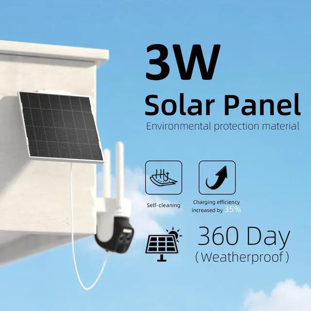 100% Wire-Free and Solar Powered: Experience constant peace of mind with this solar-powered security outdoor camera that's easy to set up and always on, thanks to its removable 3W solar panel and Bluetooth connection. The high gain 5DBi dual antenna has strong anti-interference ability and good wall penetration, ensuring more stable and powerful signal transmissiononly 2.4GHZ Wifi)