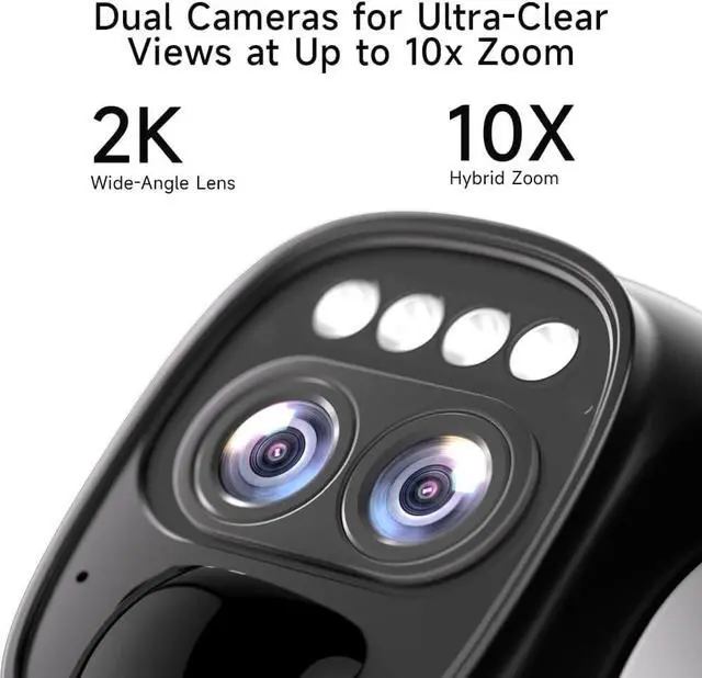 2.5K Dual-Camera Clarity & Color Night Vision: Capture every event that occurs around your home in ultra-clear 2.5K resolution. See exactly who is approaching your home with 10X hybrid zoom. The home security cameras support color/smart/infrared night vision.Allows you to enjoy vivid and accurate colors even in low-light conditions