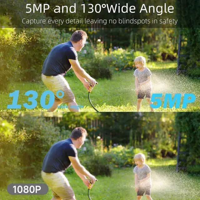 [2.5K 5MP Ultra-Clear Monitoring with 130° Wide View & Full-Color Night Vision] Capture crisp 2.5K 5MP footage day or night, powered by advanced color night vision to identify faces or license plates even in darkness. The 130° wide-angle lens ensures full coverage of your yard, porch, or driveway for comprehensive home security