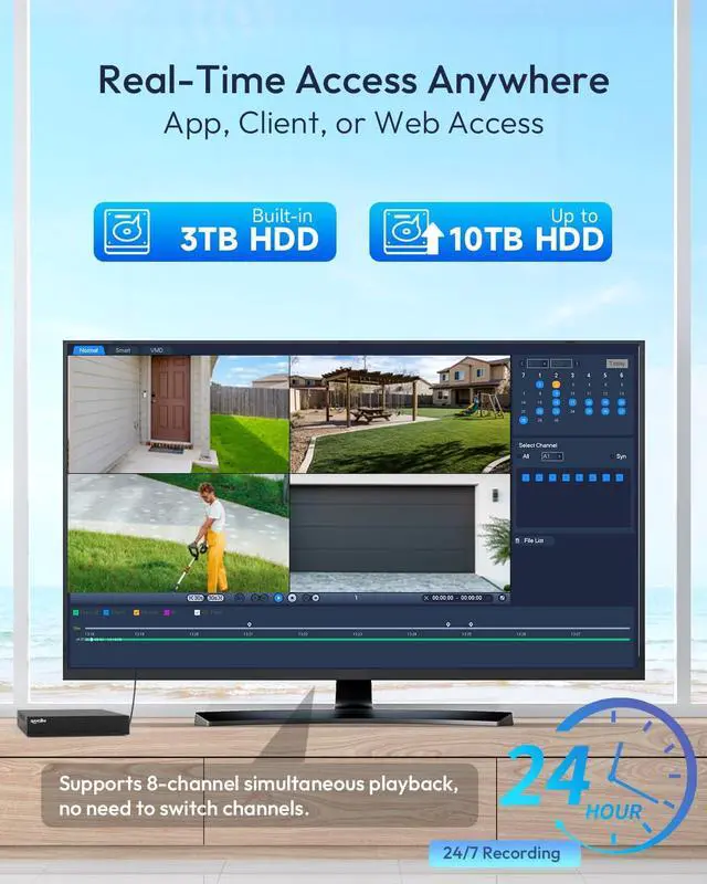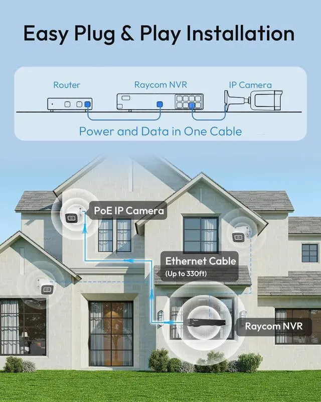 PLUG & PLAY POE WITH 3TB STORAGE: Simplify your DIY installation with a single Ethernet cable for both power and datano power outlets needed near cameras. The upgraded 3TB security-grade HDD (expandable to 10TB) supports months of 24/7 local recording without the risk of data overwrite or the burden of expensive monthly cloud fees.