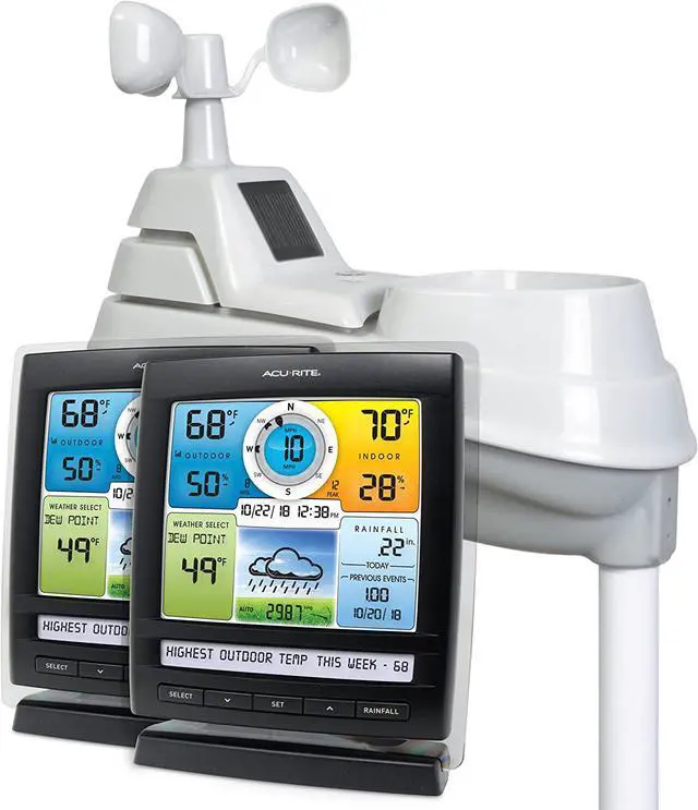 AcuRite Iris 01078 Wireless Weather Station with 2 Displays and 5-in-1 Weather Sensor: Temperature and Humidity Gauge, Rainfall, Wind Speed and Wind Direction