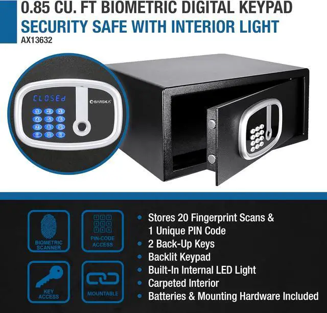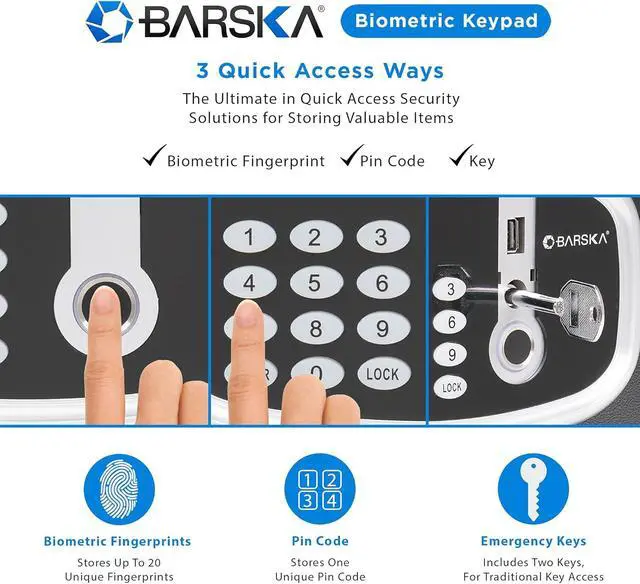 Advanced Security: The safe provides multiple access methods, and can store up to 20 fingerprints and 1 unique PIN code.