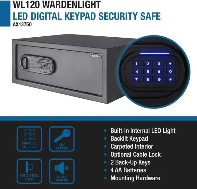 Home Safe: WL120 WardenLight Mini LED Digital Keypad Safe illuminates secure access to your valuables, even in the dead of night.