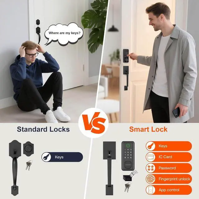 Fingerprint+ Password + Card + Key + App (Bluetooth).